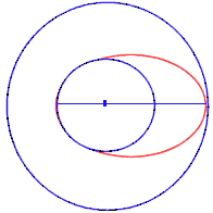 Eine Hohmann-Bahn führt z.B. eine Erkundungssonde von einer Kreisbahn um die Erde auf eine Kreisbahn um einen Planeten. Einheit von v im Applet km/s!